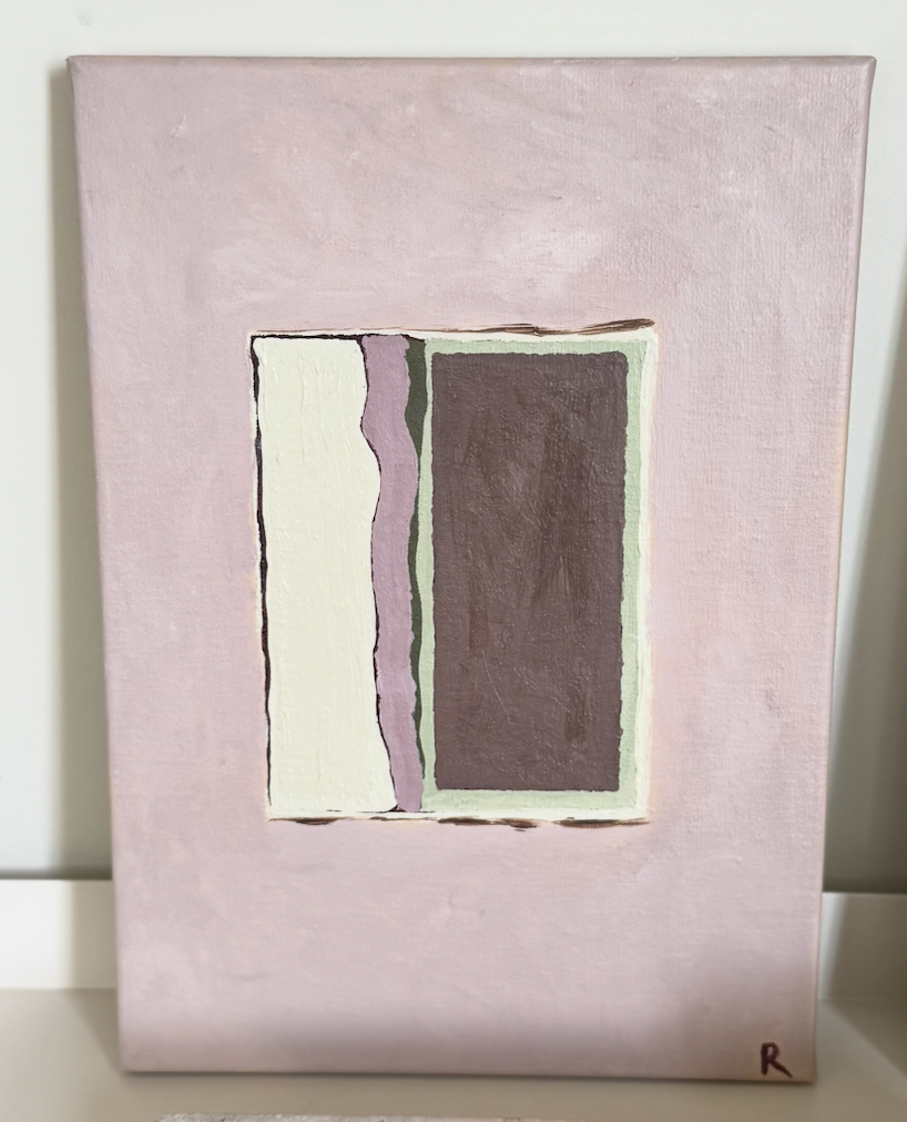 Colour is a pink with a hint of dusky mauve. A hint of sage + brown.